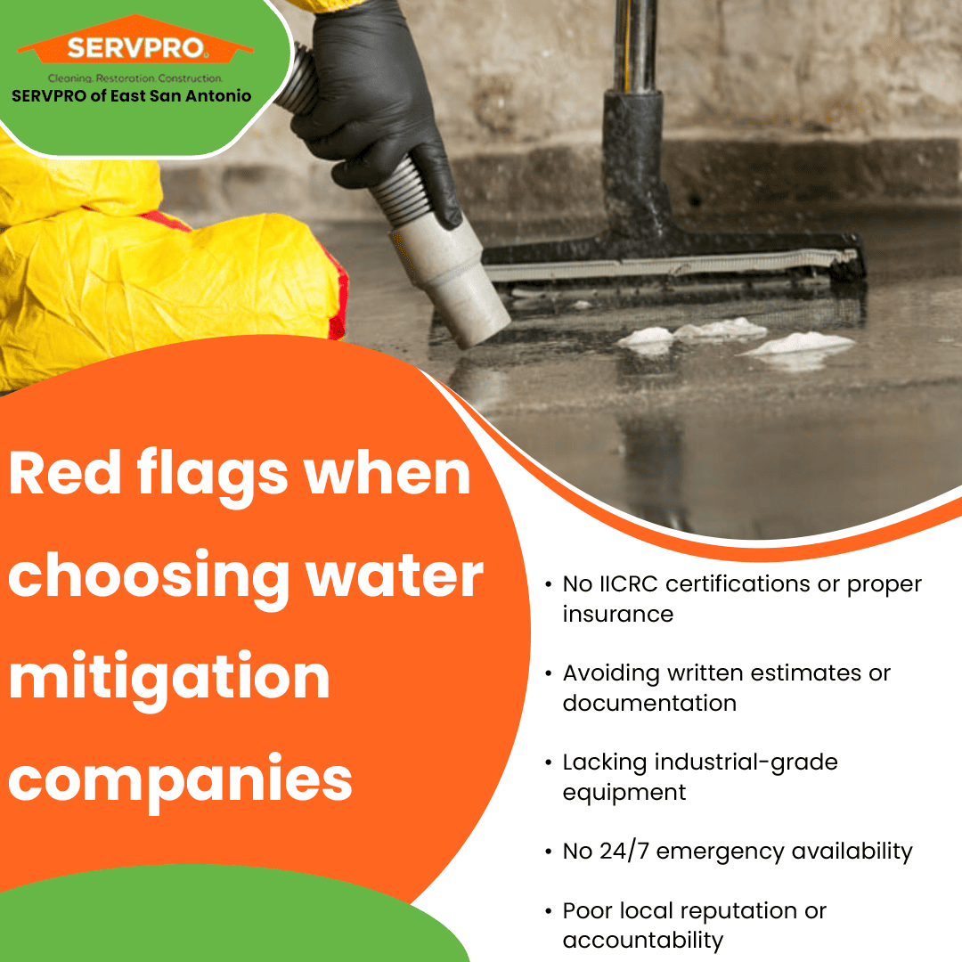 San Antonio, TX – As severe weather patterns and aging infrastructure continue to challenge San Antonio property owners, SERVPRO® of East San Antonio highlights critical factors that determine successful water damage restoration outcomes. The company's restoration professionals emphasize that property owners must understand the significant differences between qualified water mitigation companies and those lacking proper credentials or equipment.